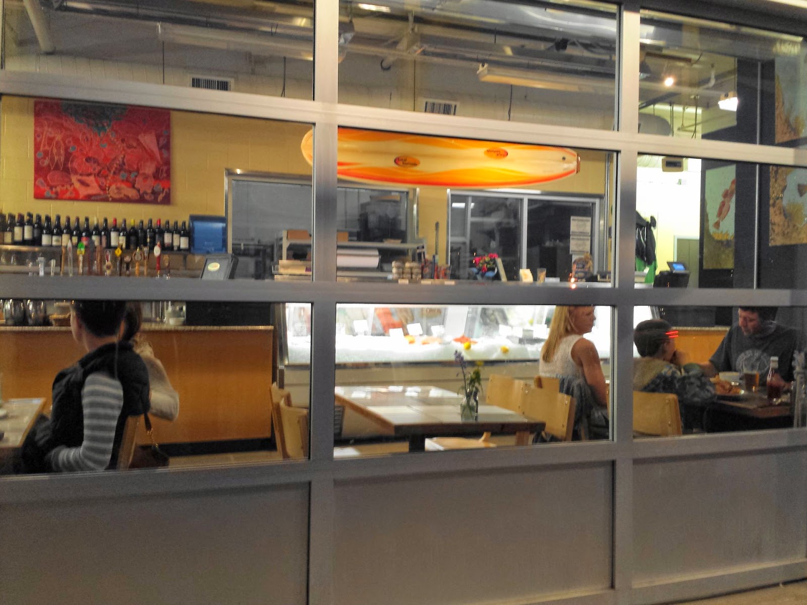 In addition to their full menu, they also have what amounts to a small market with take-and-go fresh local seafood. Unfortunately the weather wasn’t quite nice enough for them to open up the giant garage-style doors at the front of the restaurant to let in the sea air. They weren’t particularly busy on this occasion, so I was able to ask for a table without irking the hostess rather than sit elbow to elbow at the bar with the other solo diners.