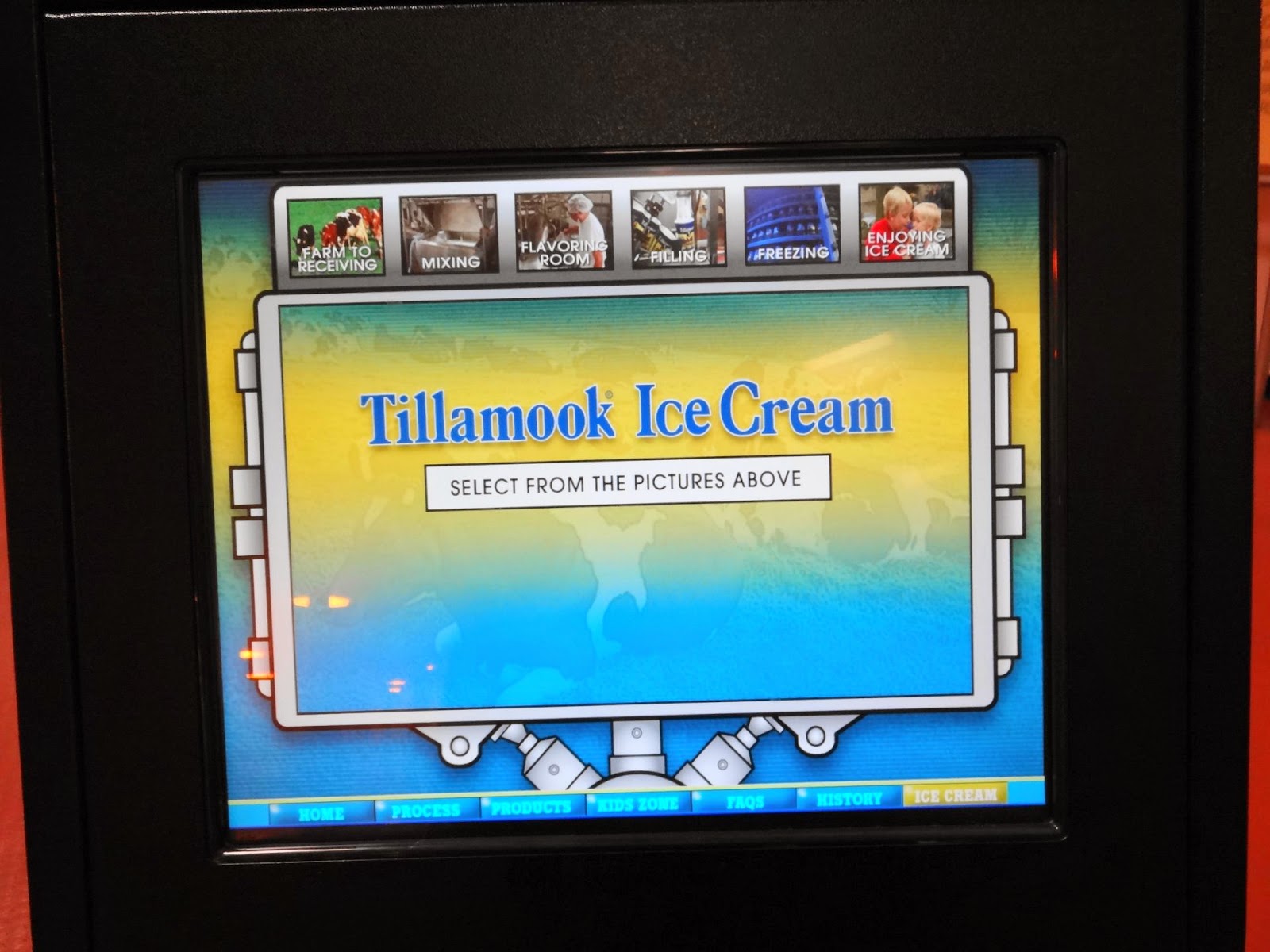 You see the gift shop first, which is a little odd. After that you go upstairs where there is all kinds of informational signage, monitors showing educational stuff, interactive computer terminals, displays of trophies and ribbons Tillamook has won…