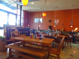 Now I’d never heard of Broken Yolk before. If we hadn’t needed gas and decided to eat as long as we already had to stop anyway, I’d still be ignorant of it now. As it was, I whipped out the smartphone, opened the Urbanspoon app, searched for breakfast spots in Corvallis, and there Broken Yolk was at the top of the list. From the outside it looked like a particularly family-type breakfast eatery, maybe with a bit of a strip mall vibe. Inside…well, I was a bit surprised.