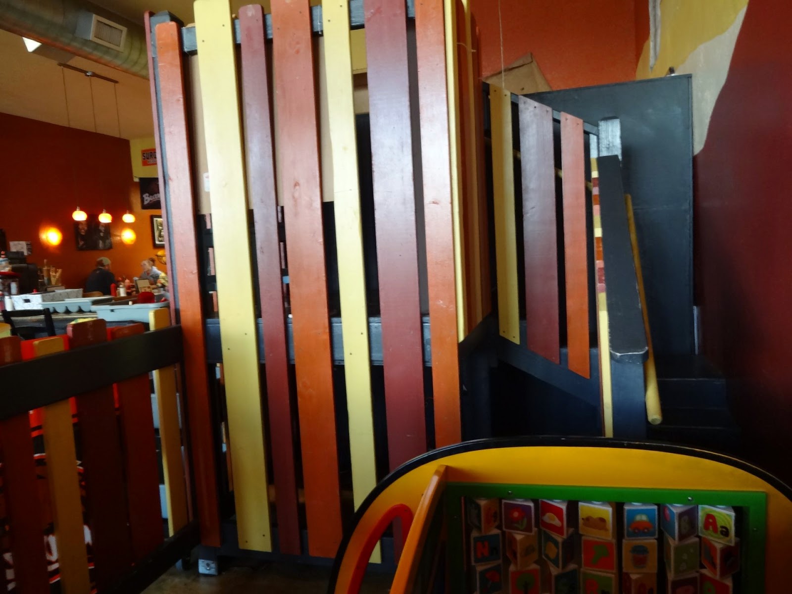 There’s even a holding pen for small children, which is great because the Broken Yolk is one of those rare breakfast and lunch only eateries that has a liquor licence.