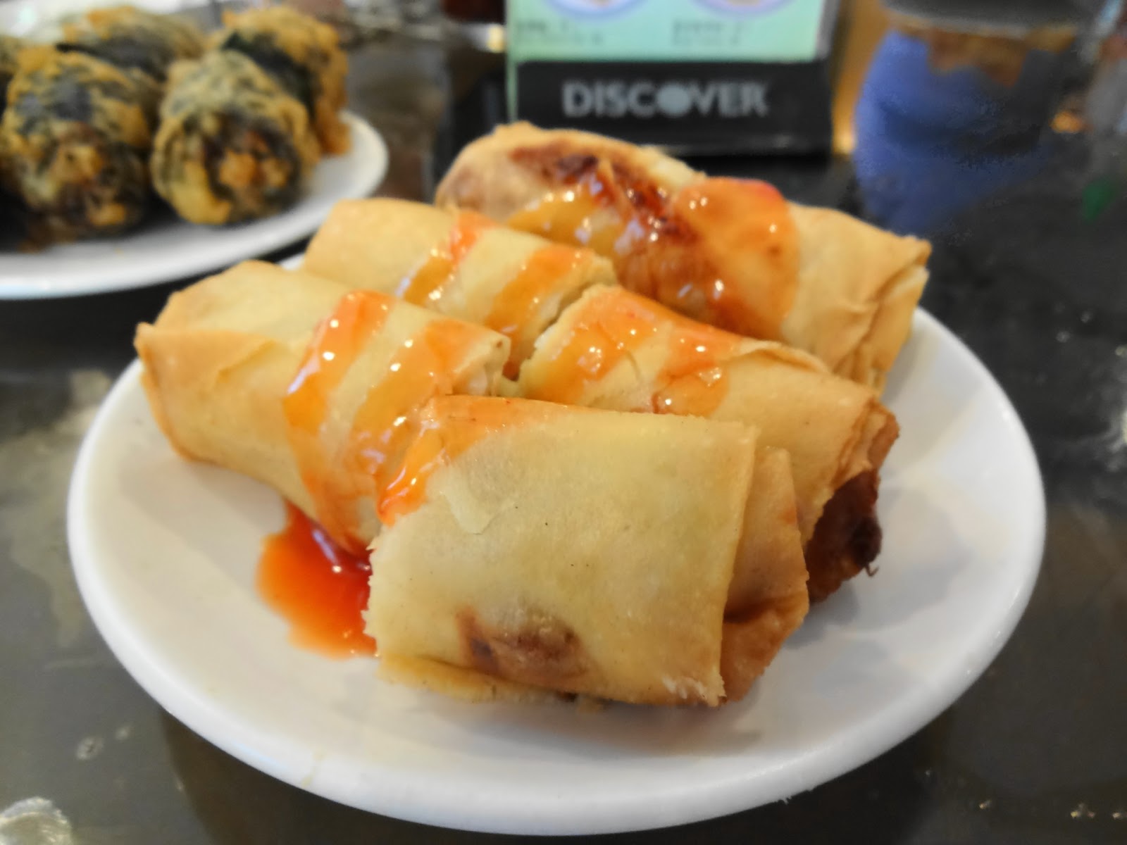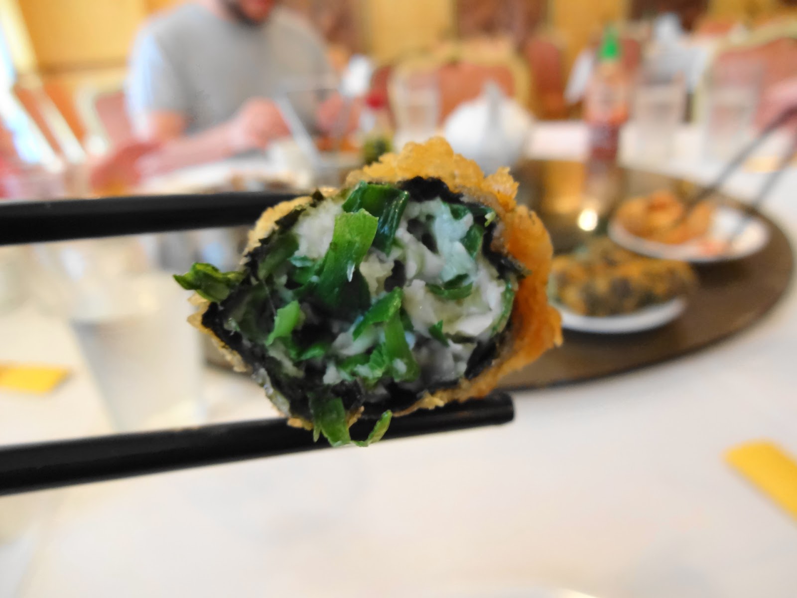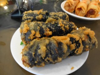 Finally, the seaweed seafood roll, all kinds of minced fishy goodness mixed with and wrapped in seaweed before being deep fried. This is one of my favorite items there, and it always seems to come around just as we’re wrapping up. Because the restaurant was considerably less busy than on my previous visits, the roll was still hot when it got to our table. And I had thought it was supposed to be a cold item! A nice way to wrap up my first time back since 2011.