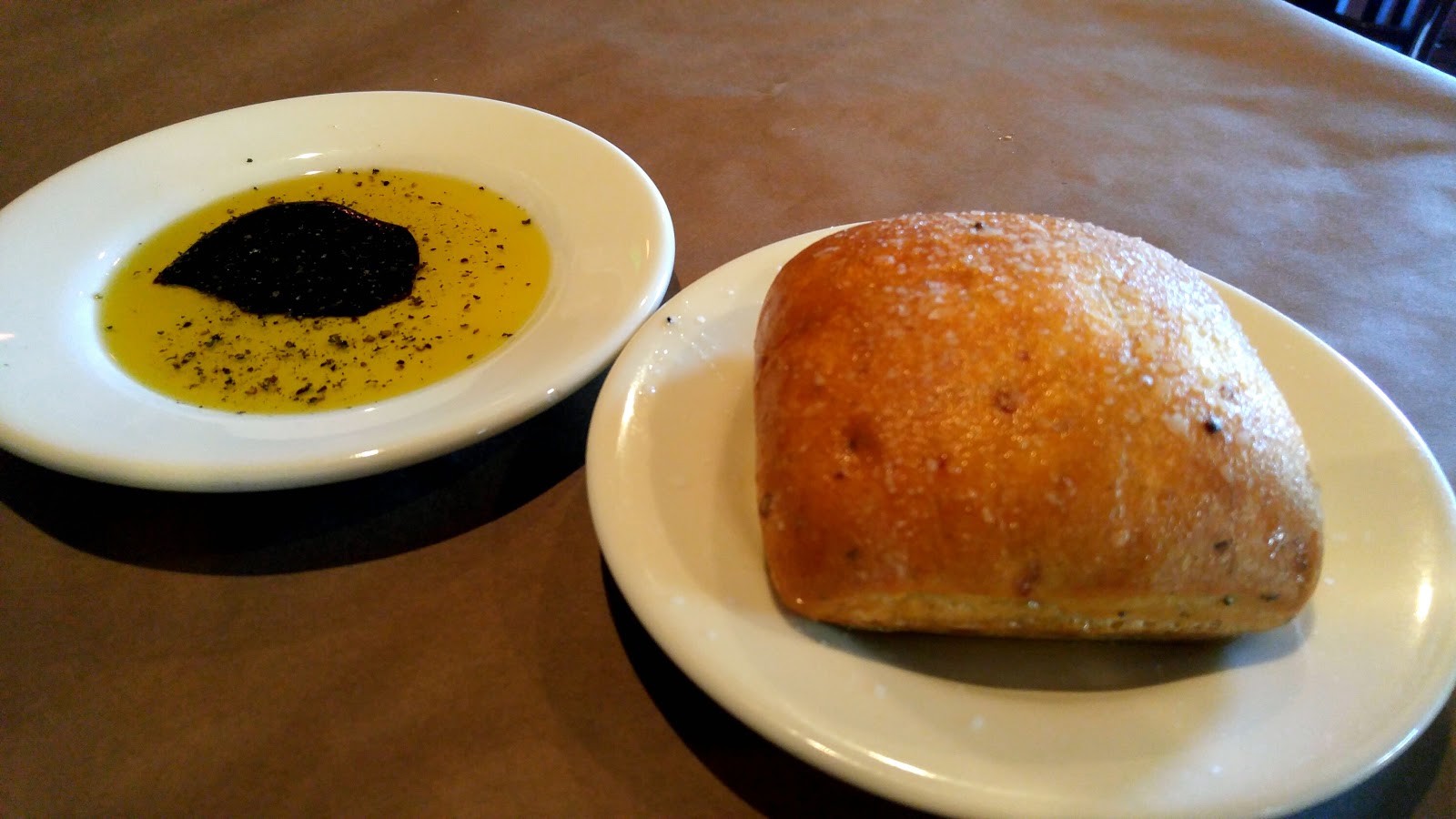 After we placed our orders, we were brought a square of hot, crusty bread and a dish of herbed olive oil with a little pool of balsamic in the middle to dip it in. I love all of these things, so I was happy with this. The balsamic might be a bit strong for some, but for yours truly it was just right.