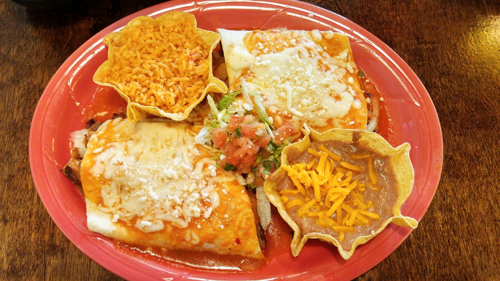 I lucked out with my meal. For some reason, even though all of us got rice and beans (and cheddar cheese, did I mention the cheddar cheese?) with our meals, I was the only one who got mine in crispy little tortilla bowls. The burrito was also split in half and, along with the other components, was arranged into some of the most interesting plating I’ve seen at a Mexican restaurant. The beans were still meh, but I liked the rice (it’s not hard to impress me with rice, though). The burrito was the real standout item though. The pork was flavorful, tender, and mixed with grilled green bell peppers and onions. The tortilla itself was the flour variety, not something I get overly enthused about unless it’s grilled, but it was covered in Mi Casa’s burrito sauce which, fortunately for me, is much better than their enchilada sauce. They did the usual Americanized thing where they melted Monterrey Jack cheese over the burrito, but then they also garnished it with Mexican Cotija cheese. The end result is something that’s not exactly traditional, but isn’t completely bastardized either. The end result is that it works, at least in my slightly less than humble opinion. All in all, it was a very interesting meal, and I look forward to cautiously exploring more of their menu.