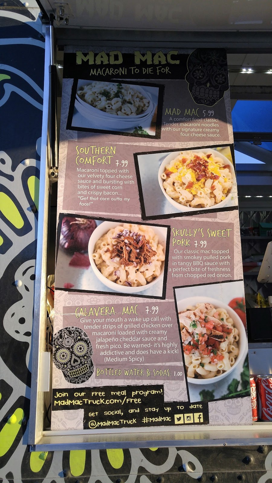While we have lost a few trucks and had a few others who have evolved into brick and mortar locations, others are popping up to take their places. One of the newbies, Mad Mac, transplanted here from Utah at the beginning of the year. As you might expect from the name, they specialize in macaroni and cheese concoctions. And since they’re one of the regular trucks on Slanted Rock’s rotation, they’re in my neck of the woods fairly often, and I took advantage of a particularly nice day a few weeks back to check them out.