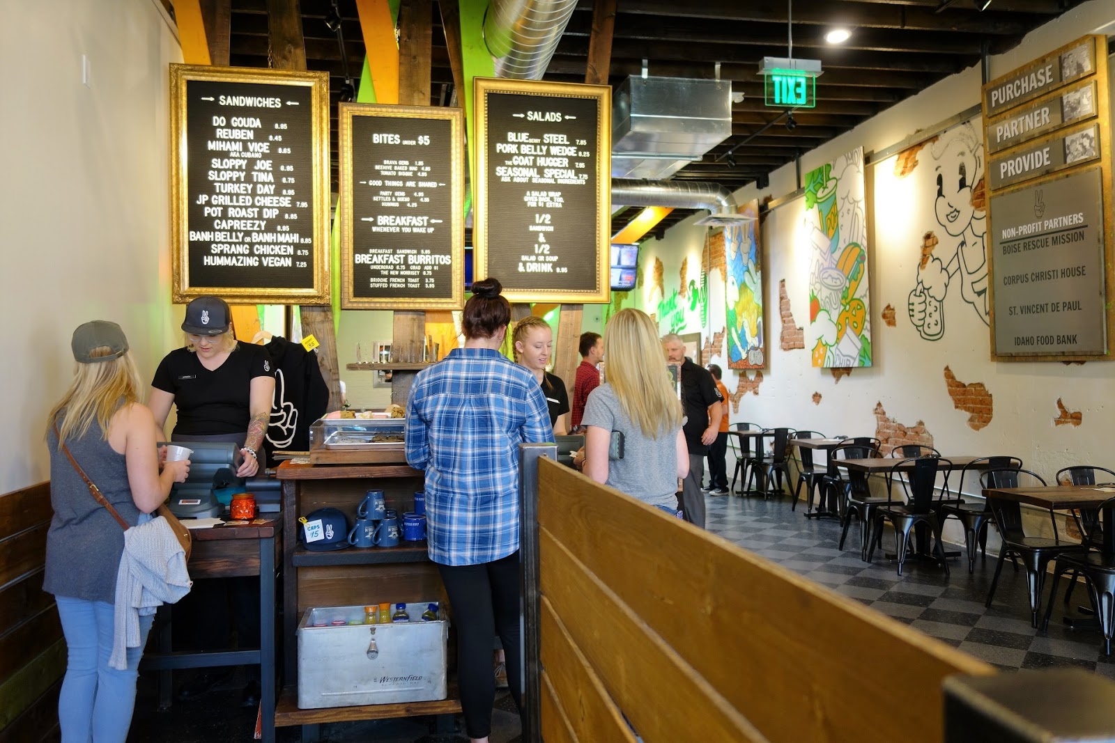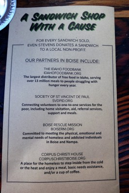 There is plenty of information out there about Even Stevens’ business model, including in our local press, so I’ll just give you the TL;DR version: at the end of each month, Even Stevens tallies up their sandwich sales and banks funds to purchase supplies for making an equal number of sandwiches to donate to people who could really use a sandwich. If you’d like it stated more eloquently, you can see more details here.