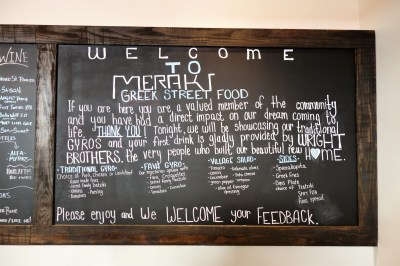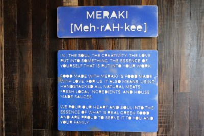 So yeah, I recommend the place. Heartily. If they can make a gyro that good with pork, I can’t wait to try the lamb version. And MGR’s only complaint was “Why no dessert?”, which was actually heartfelt and kind of sad if you could see the look in her eyes. In her ideal world. every eatery from the loftiest French restaurant to the lowliest street food shack would have at least one dessert offering. I digress. Wondering when you can sample Meraki’s wares for yourself?