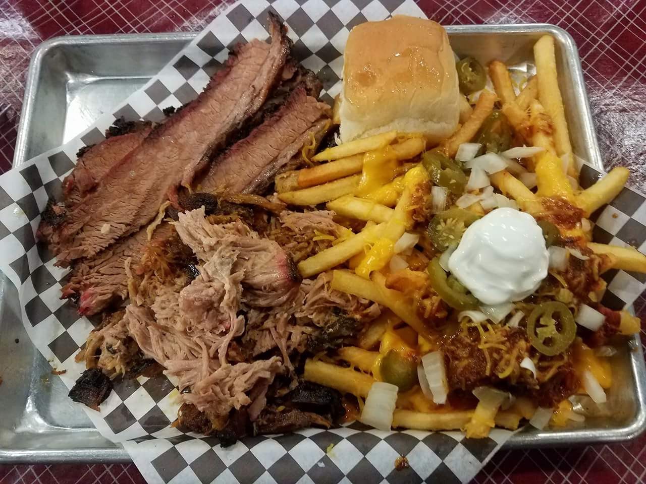 | Brisket, pulled pork, and chili cheese fries from Big Daddy’s BBQ in Meridian |