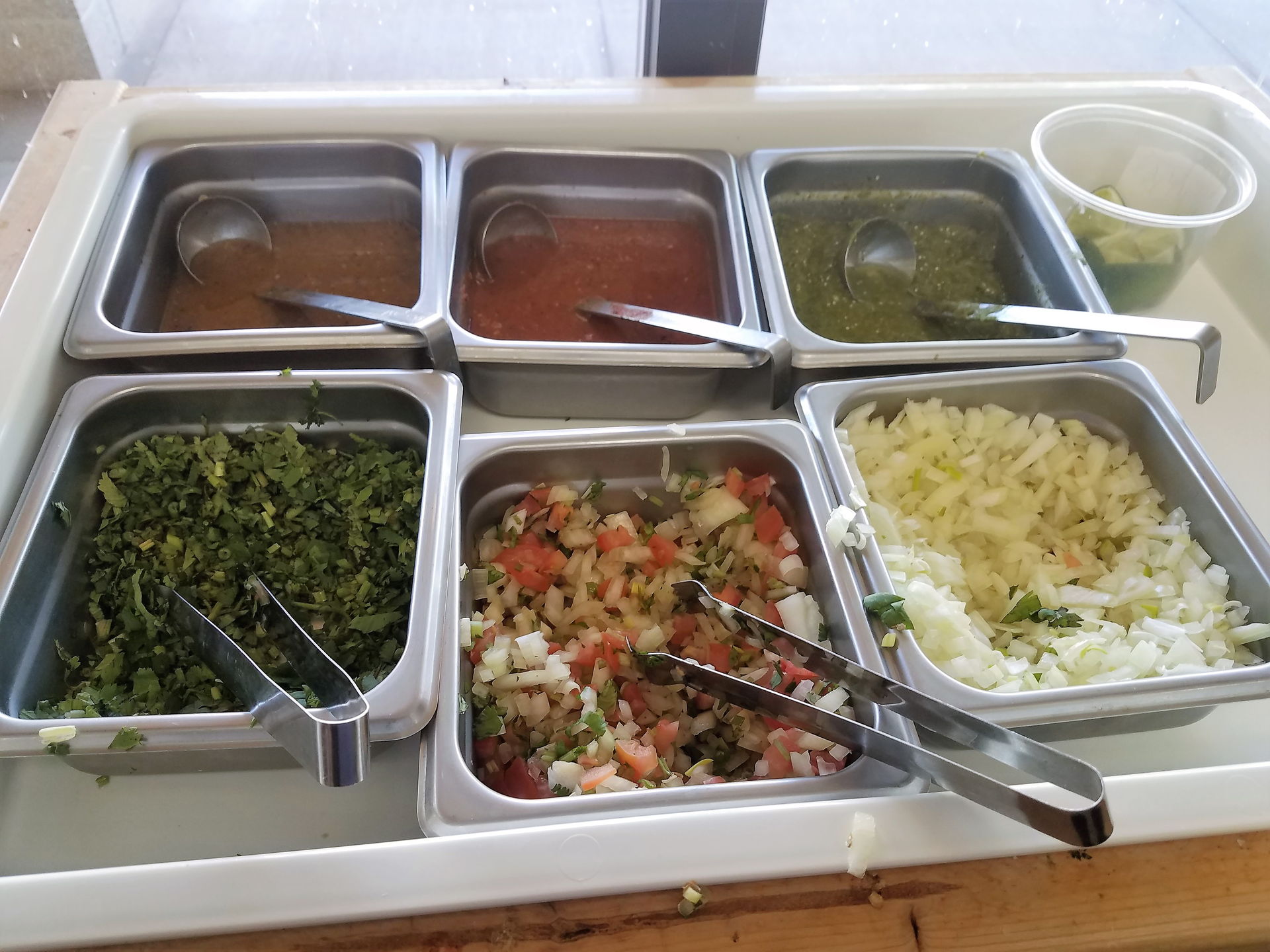 Luckily it didn’t take long for us to spot the little self-service toppings bar which provided us with three salsa options, cilantro, onion, pico de gallo, and lime wedges. My teenage taco fiend friend loaded up on fixings and dove in. Her verdict? Carnitas ain’t no substitute for al pastor. She still demolished pretty much all of the four tacos on her plate.